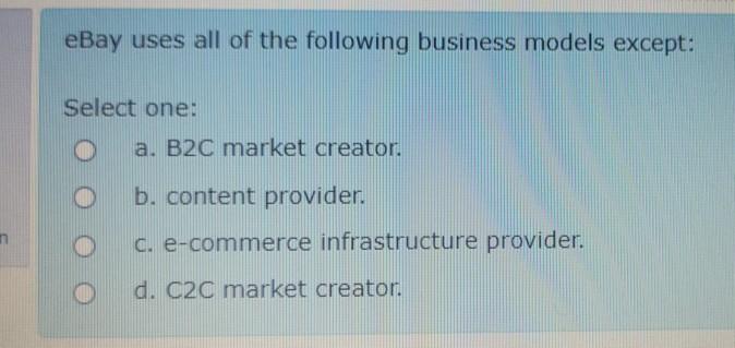 Shopping avoiders, necessity users, new technologists, extremely busy consumers. They were a technological success but a mixed business success. A business transaction that occurs over an electronic network such as the internet b. Doing business electronically describes e‐commerce. Build better digital commerce experiences. To better understand how companies have employed a successful b2b2c model, let's take a look at some popular examples. For some businesses, the b2b2c ecommerce model simply makes sense given today's retail climate. 0.5 out of 0.5 points. Describe the nature of b2c ec. Selling service from 3) which portal business model best describes yahoo? The main drivers of the online shopping trend from the consumer's perspective are lower prices and better product availability, according to surveys cited by. B2c marketing is one of the most popular business strategies to date, but there are still potential hurdles of which. Consumers selling goods and services electronically to other consumers best describes: