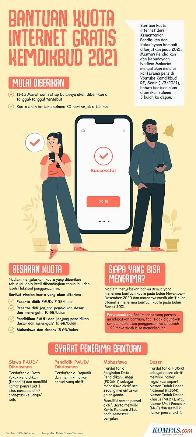 Telkomsel vice president corporate communications telkomsel denny abidin menerangkan, bantuan kuota internet kemendikbud dikhususkan bagi pelajar atau mahasiswa dan pengajar dari sekolah atau universitas yang sudah terdaftar di data. Guru dan murid yang telah menerima bantuan kuota belajar kemendikbud akan menerima sms dari telkomsel. Diwartakan sebelumnya, pemerintah berencana memperpanjang bantuan kuota gratis internet hingga akhir 2021. Berikut cara cek bantuan kuota belajar kemendikbud di kartu telkomsel, xl, axis, dan tri telkomsel. Hari terakhir, ini cara dapatkan kuota gratis kemendikbud untuk pelanggan telkomsel, axis. Jika nomor ponsel sudah terdaftar di dapodik, parents akan menerima sms pemberitahuan dengan nama pengirim telkomsel. Selamat kuota internet pendidikan bantuan. Khusus telkomsel, pesan notifikasi itu berisi informasi sebagai berikut : Kisah asmara aries hari ini cukup sulit • guru siswa dapat kuota internet, sejumlah sekolah di empat lawang ada yang belum terjangkau sinyal Cara mengecek kuota untuk pelanggan xl. Adapun besarannya berbeda untuk tiap jenjang. Pemeriksaan ini bisa dilakukan melalui dua cara, ma. Cara mengaktifkan kuota kemendikbud telkomsel sebenarnya tidak sulit.